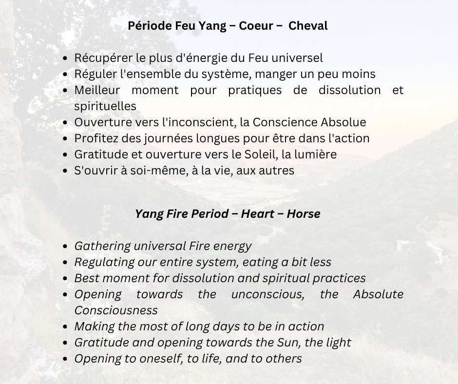 Et il y a cette grande force du Feu qui est au maximum: c’est le meilleur moment pour les pratiques de dissolution, les pratiques spirituelles, les pratiques d’ouverture vers la méditation.